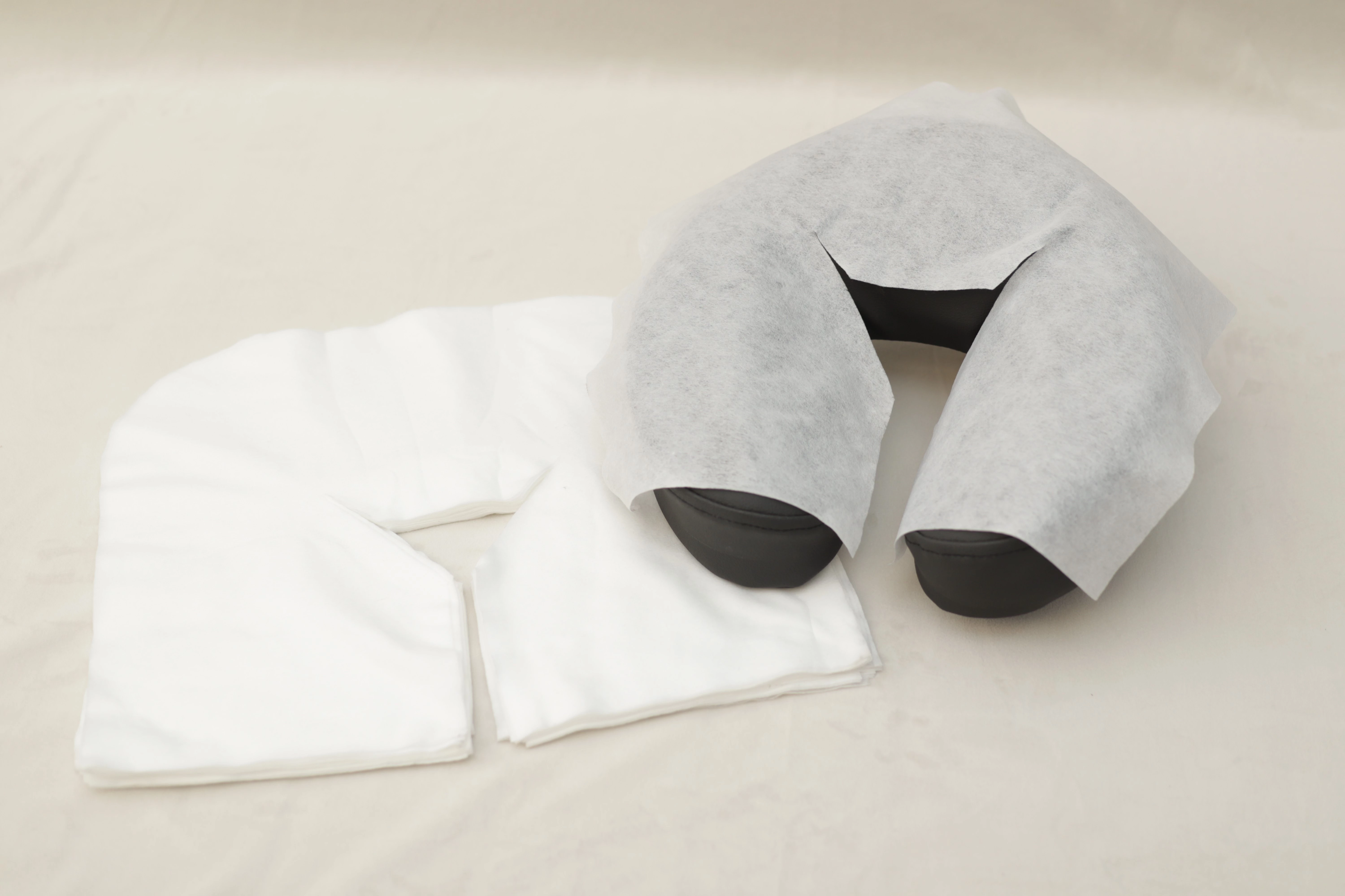 Mjukt, prasselfritt ansiktsskydd med Y-hål för huvudkudde. Hygieniskt engångsskydd för massage och behandling.