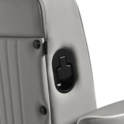 Den effektiva hydrauliska lyften gör det möjligt att justera sitthöjden smidigt mellan 60–76 cm, även med kunden i stolen. Detta gör det enkelt att anpassa arbetspositionen efter både kundens längd och behandlingens krav. Med den praktiska sidomekanismen kan ryggstöd och fotstöd lutas för ökad komfort vid mer precisa behandlingar. Det utdragbara nackstödet ger extra stöd och ökad avslappning.