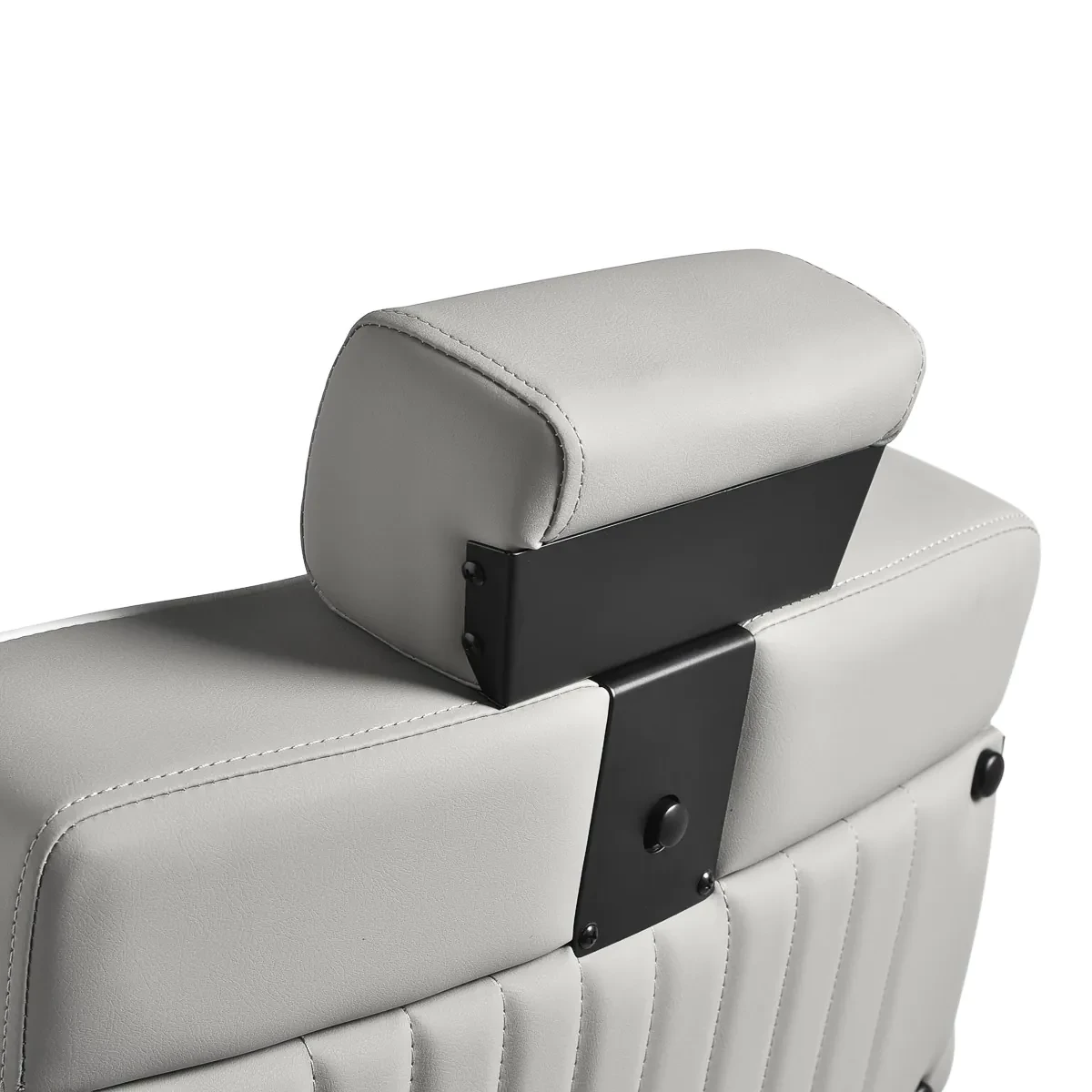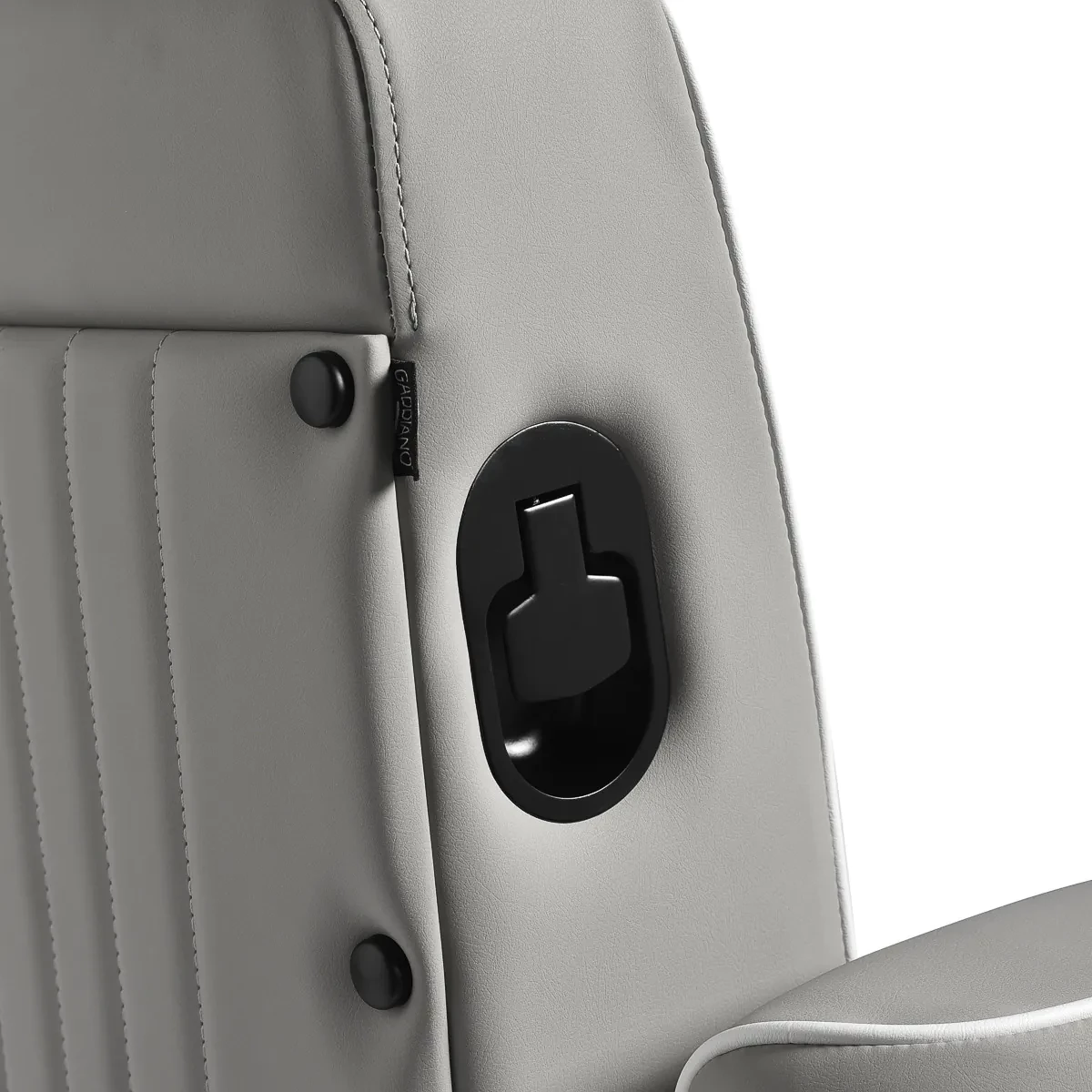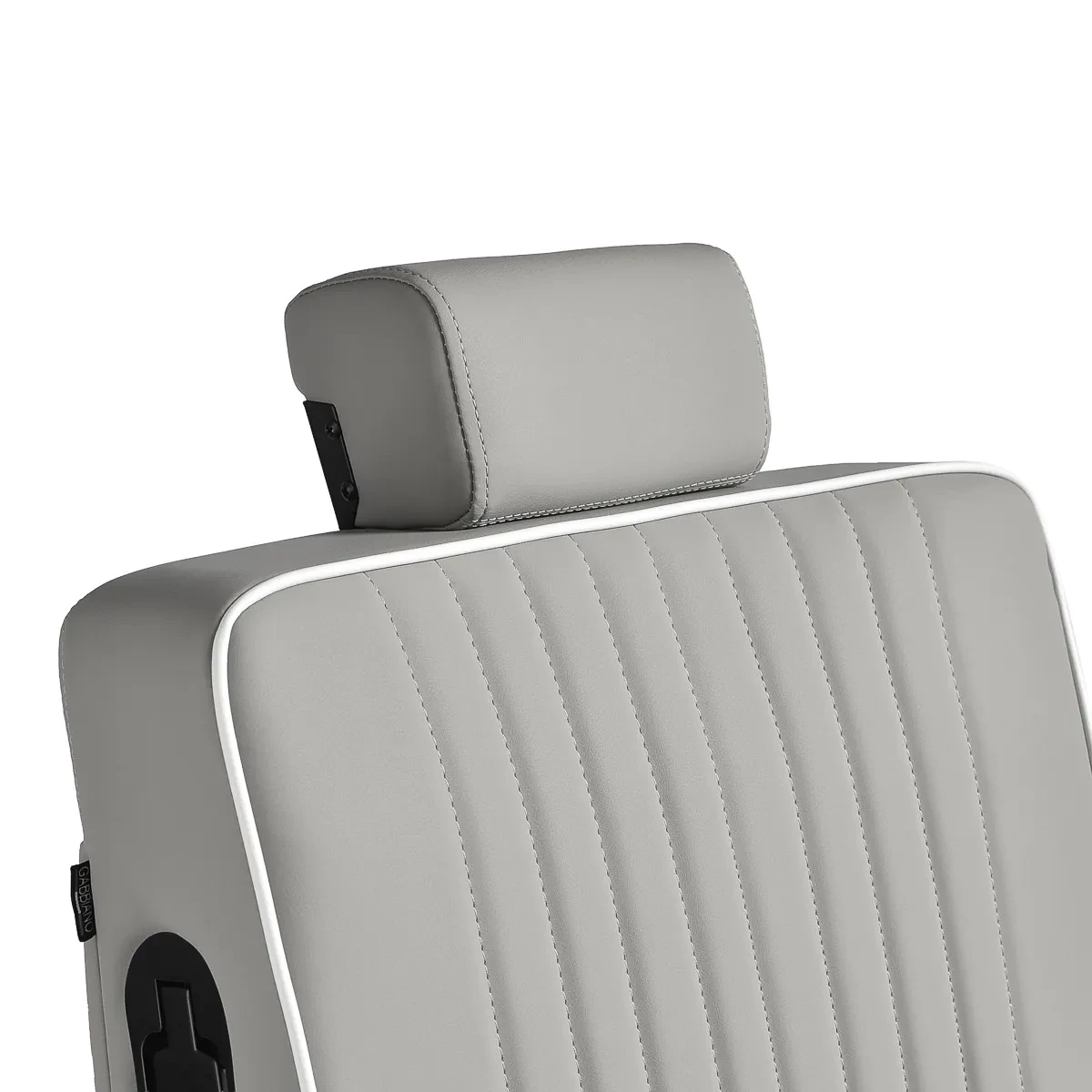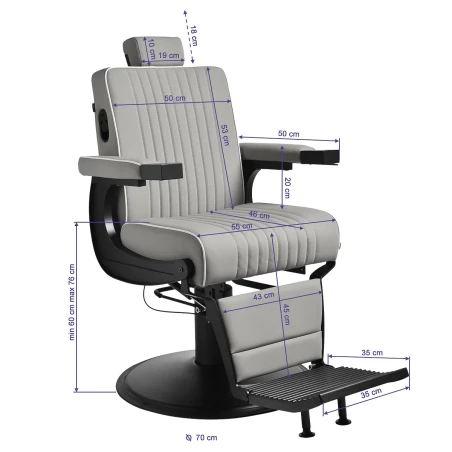 Gabbiano Levi barberstol kombinerar stilren design med hög funktionalitet. Den är utrustad med en robust hydraulisk lyft, justerbart ryggstöd, fotstöd och ett utdragbart nackstöd, vilket möjliggör optimal positionering anpassad efter varje behandling. Detta ger maximal komfort för både kund och frisör. De noggrant utförda detaljerna, de vertikala sömmarna och de eleganta finisharna gör stolen till ett iögonfallande inslag i varje barbersalong.