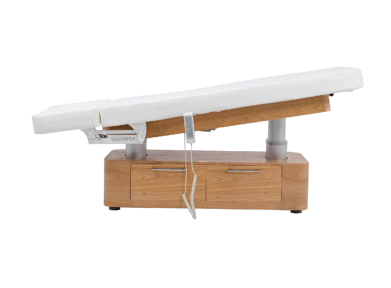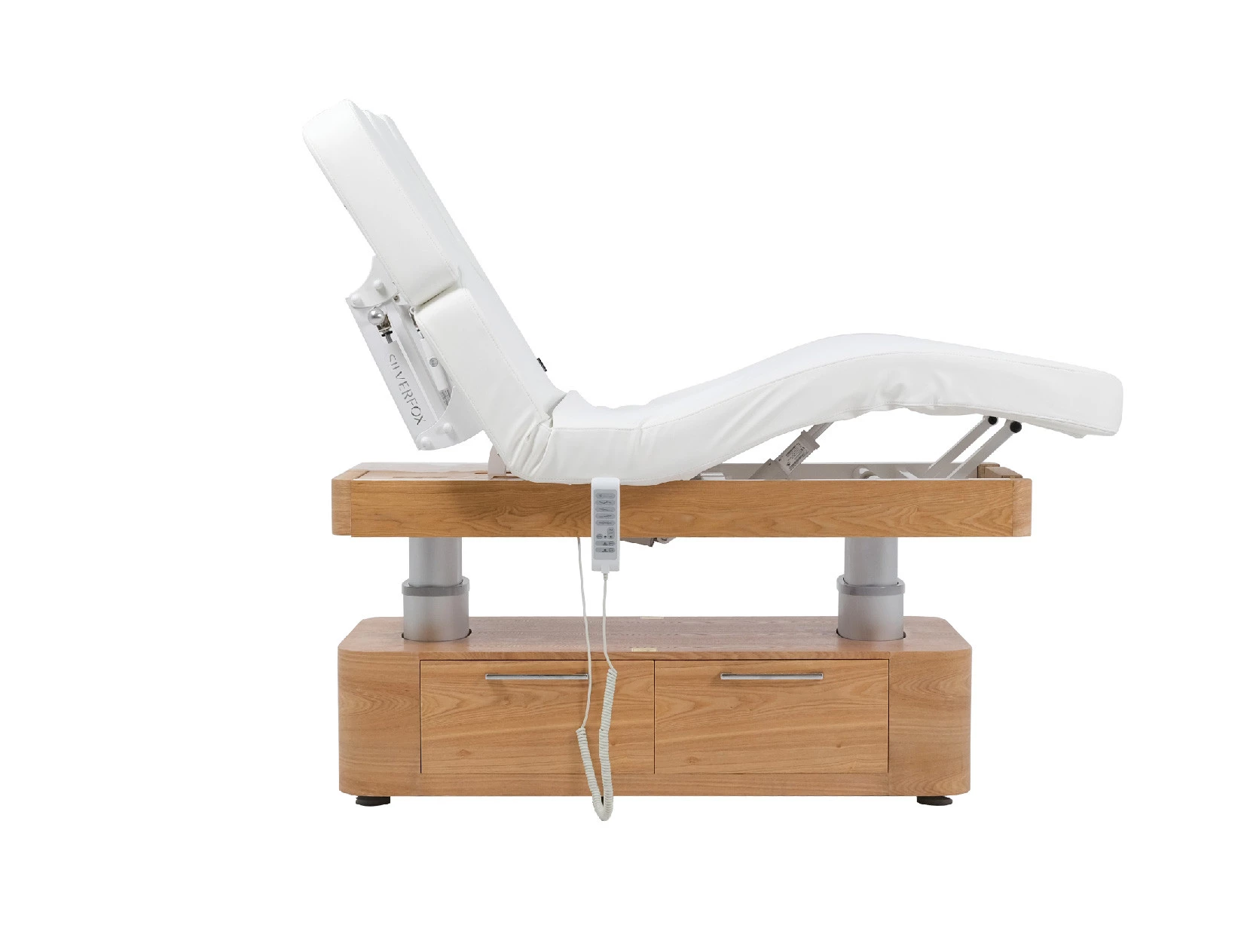 Höjd, ryggstöd, fotstöd och Trendelenburg-lutning kan justeras elektriskt för att ge optimal komfort och ergonomi för både kund och behandlare. De manuellt justerbara armstöden ökar flexibiliteten ytterligare, medan det praktiska underskåpet med två lådor erbjuder smidig förvaring av produkter och tillbehör. Bänken har även ansiktshål för bekvämt liggläge.