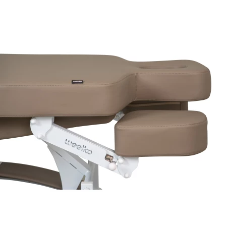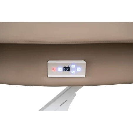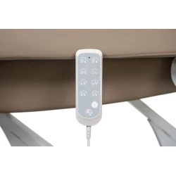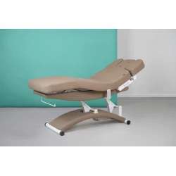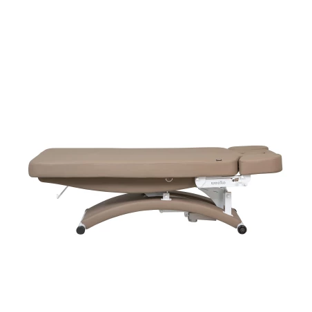 En avancerad spa-brits med tre motorer, värme, tjock stoppning och justerbara detaljer som ger hög komfort för kunden och optimal ergonomi för terapeuten.