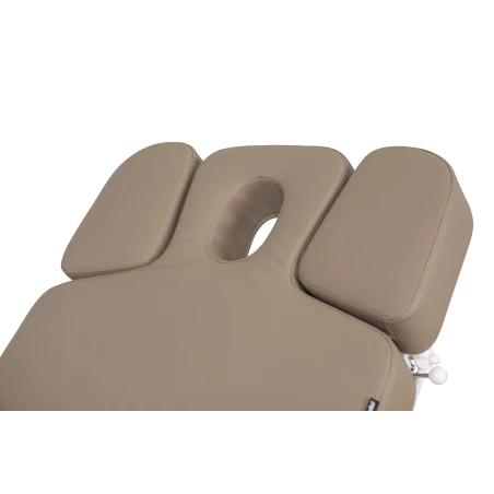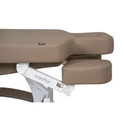 Britsen har en robust madrass i ett stycke med tre sektioner samt ett integrerat värmesystem som ökar avslappningen och förbättrar behandlingsupplevelsen. Justerbara armstöd och ett bekvämt nackstöd med ansiktshål säkerställer optimal ergonomi för både kund och behandlare.