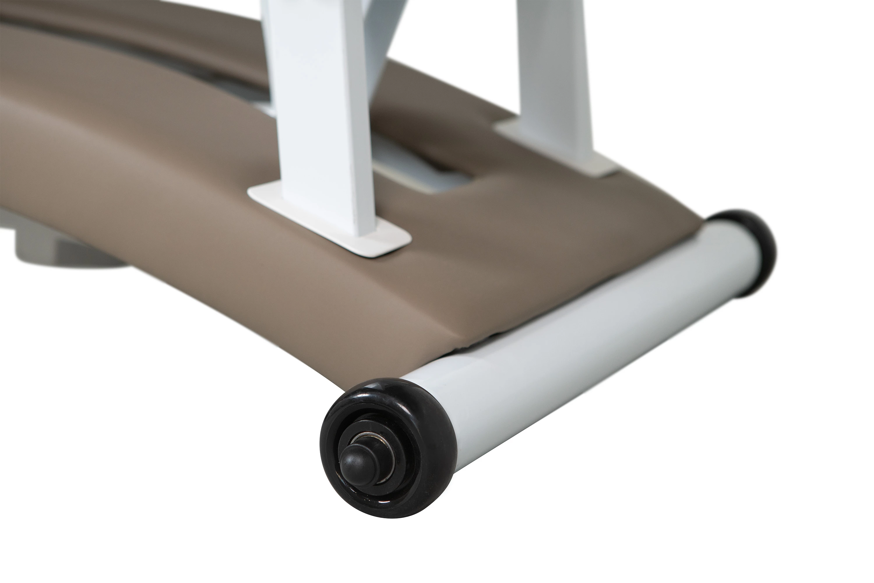 Den praktiska hjulfunktionen gör britsen lätt att flytta, medan den elegant rundade basen ger bättre åtkomst för terapeuten och förbättrar arbetsställningen vid längre behandlingar.