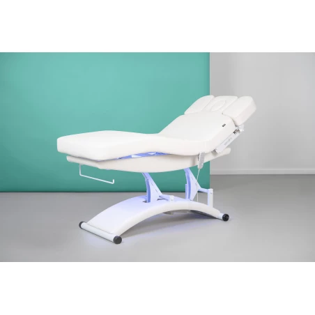 En avancerad spa-brits med tre motorer, värme, tjock stoppning och justerbara detaljer som ger hög komfort för kunden och optimal ergonomi för terapeuten.