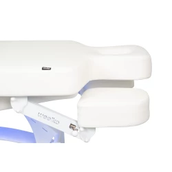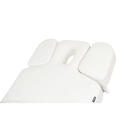 Britsen har en robust madrass i ett stycke med tre sektioner samt ett integrerat värmesystem som ökar avslappningen och förbättrar behandlingsupplevelsen. Justerbara armstöd och ett bekvämt nackstöd med ansiktshål säkerställer optimal ergonomi för både kund och behandlare.