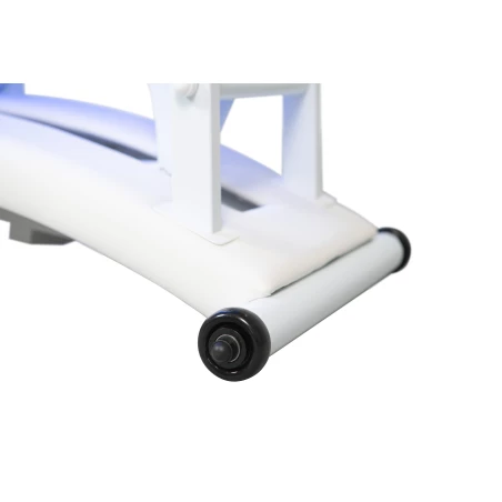 Den praktiska hjulfunktionen gör britsen lätt att flytta, medan den elegant rundade basen ger bättre åtkomst för terapeuten och förbättrar arbetsställningen vid längre behandlingar.
