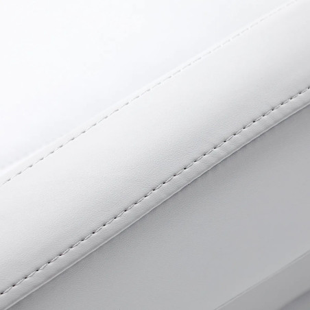 Azzurro Lux är klädd i högkvalitativt syntetiskt läder i eleganta vita nyanser – slitstarkt, fuktavvisande och lätt att rengöra. Den robusta basen ger stabilitet under daglig användning, medan den precisa ytfinishen och den moderna designen förstärker stolens exklusiva karaktär.