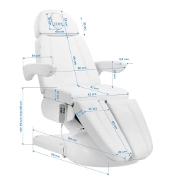 Azzurro Lux är en modern, elektrisk kosmetikstol utvecklad för professionella salonger och kliniker som kräver hög precision, stabilitet och användarvänlighet. Den är utrustad med tre trådstyrda motorer som möjliggör smidig och exakt justering av stolens alla huvuddelar. Tack vare sin stabilitet, breda justeringsmöjligheter och ergonomiska design är den perfekt för kosmetiska behandlingar, fotvård, estetiska ingrepp och hudvård.