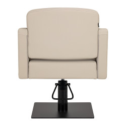 Den fullständiga vridmekanismen ökar rörligheten och gör arbetet mer effektivt och mindre ansträngande. Den skumstoppade sitsen ger hög komfort under alla typer av behandlingar. Ergonomiska armstöd främjar korrekt hållning för kunden, vilket ger både stabilitet och bekvämlighet under klippning och styling. En praktisk öppning mellan ryggstödet och sitsen gör rengöringen enkel och snabb genom att hår enkelt kan tas bort från svåråtkomliga områden. Detta underlättar en smidig och hygienisk förberedelse inför nästa kund.
