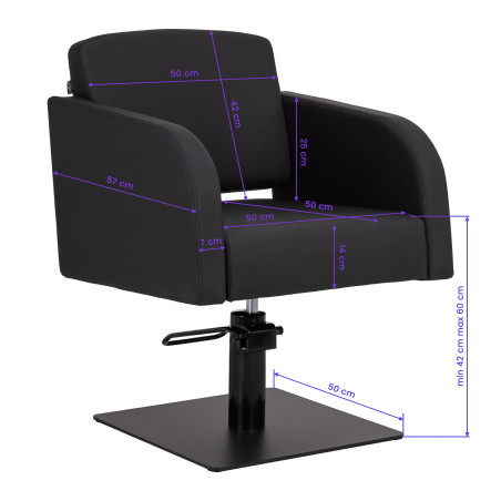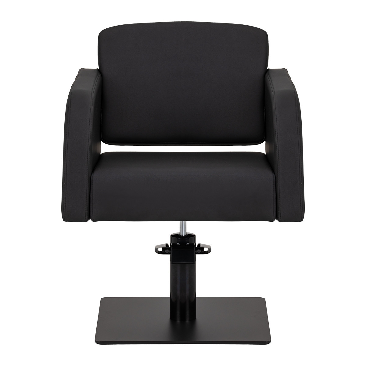 Den fullständiga vridmekanismen ökar rörligheten och gör arbetet mer effektivt och mindre ansträngande. Den skumstoppade sitsen ger hög komfort under alla typer av behandlingar. Ergonomiska armstöd främjar korrekt hållning för kunden, vilket ger både stabilitet och bekvämlighet under klippning och styling. En praktisk öppning mellan ryggstödet och sitsen gör rengöringen enkel och snabb genom att hår enkelt kan tas bort från svåråtkomliga områden. Detta underlättar en smidig och hygienisk förberedelse inför nästa kund.
