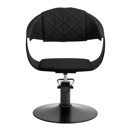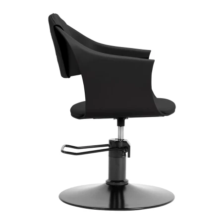 Den svarta plastkonstruktionen är slitstark, lätt att rengöra och fuktbeständig. Den runda, svarta basen ger stabilitet och en modern, stilren look som passar alla salonger.