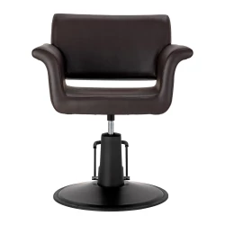 Frisörstol i svart färg med stilren och elegant design. Ett smakfullt tillskott till salonger som föredrar en ljusare färgpalett.