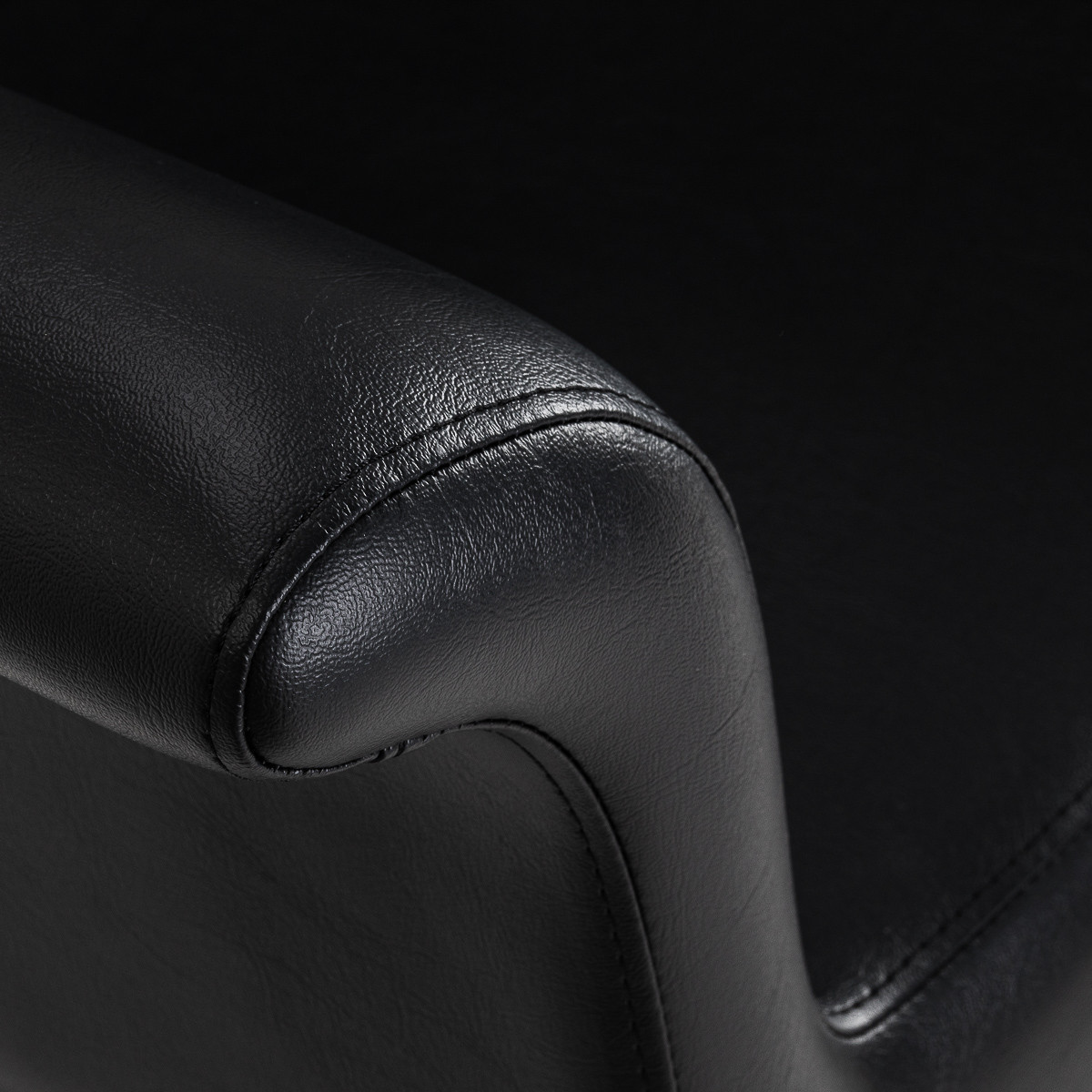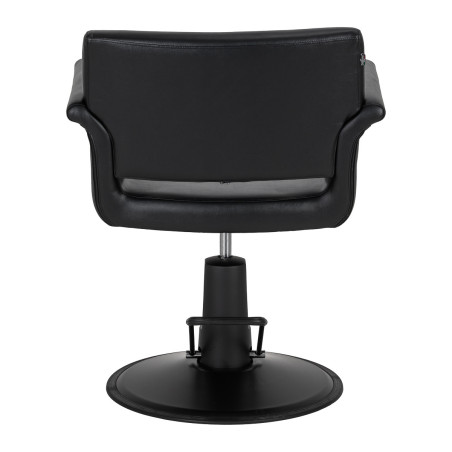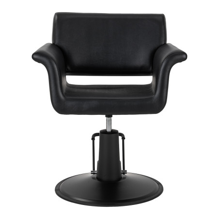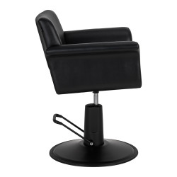 Gabbiano Lucca barber chair combines modern simplicity with everyday comfort. The round black base ensures stability, while the black PU leather upholstery provides comfort during treatments. Durable, water-resistant materials make this model not only comfortable but also exceptionally easy to maintain, preserving its aesthetic appearance for years. The distinct outward-curved armrests give the chair an elegant look while supporting a comfortable position for the client. This versatile model fits perfectly in both modern and classic interiors, emphasizing the professional style of the salon.