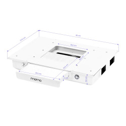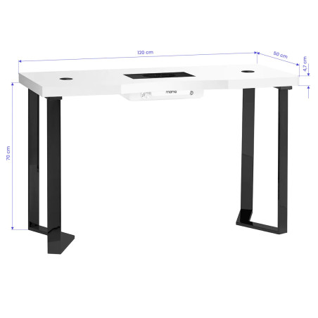Momo 05 är ett modernt kosmetikbord som kombinerar minimalistisk design och praktisk funktionalitet. Den högblanka vita bordsskivan och de svarta, geometriska benen ger en lätt och elegant känsla, medan gulddetaljerna tillför en exklusiv touch. Bordet är designat för professionella salonger som värdesätter stil, komfort och effektivitet i det dagliga arbetet.
