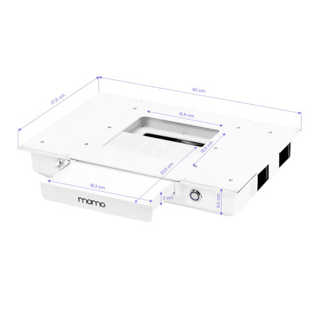 Den integrerade Momo J-02 kassettdammsugaren förbättrar arbetskomforten och salongshygienen genom att effektivt avlägsna damm som uppstår vid behandlingar, såsom manikyr. Den håller luften ren och arbetsytan fri från föroreningar – för en säker och trivsam miljö för både kund och kosmetolog. Dammsugaren är enkel att använda och underhålla, och regelbunden filterrengöring garanterar långvarig och hög prestanda.