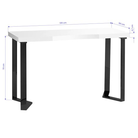 Momo 05 är ett modernt kosmetikbord som förenar minimalism och elegans. Den högblanka vita bordsskivan och de svarta geometriska benen skapar en stilren helhet som passar både små och stora salonger. Med gulddetaljer som ger en exklusiv touch är detta bord perfekt för den som värdesätter design, komfort och funktion i ett.