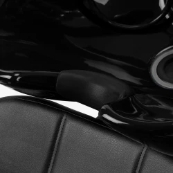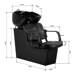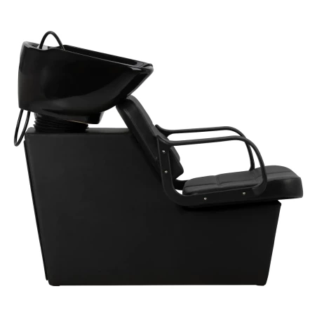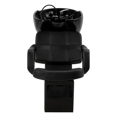 Den moderna stolen med stabilt ryggstöd och bred sits säkerställer komfort även under långa behandlingar. Klädseln i svart konstläder är fuktbeständig och lätt att rengöra, vilket gör stationen idealisk för intensiv användning. Komplett med kran, duschmunstycke och dedikerade slangar är Hair System Komodo en fullt utrustad och mångsidig hårtvättstation som smidigt integreras i både moderna och klassiska salonger.