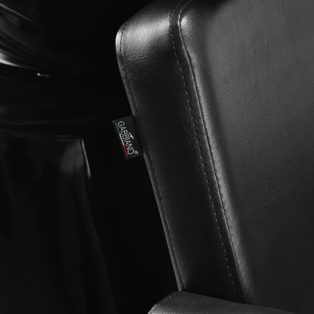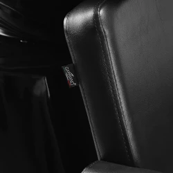 Den minimalistiska fåtöljen med rundad sits kombinerar enkel form med hög komfort. Ryggstödet är vinklat för optimal stöd och ergonomi, medan klädseln i slitstarkt konstläder i svarta nyanser är lätt att rengöra och tålig för dagligt bruk. Den moderna designen ger salongen ett professionellt och stilrent uttryck.