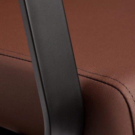 Det ergonomiskt utformade sätet erbjuder optimalt svankstöd och hög sittkomfort. De geometriska armstöden i svart metall ger korrekt axelpositionering och ett modernt utseende. Sitsen är stoppad med deformationsbeständigt skum och klädd i mjukt orange konstläder som är både slitstarkt, lätt att rengöra och behåller sitt eleganta utseende över tid. Kombinationen av den orange klädseln och svarta detaljer ger tvättstationen en modern och exklusiv karaktär. Setet innehåller kompletta svarta armaturer, inklusive kran, duschmunstycke och dedikerade slangar – en fullständig uppsättning redo för professionellt bruk.