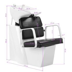 Den eleganta Gabbiano Porto hårtvättstation är designad med fokus på praktisk funktionalitet för professionella frisörsalonger. Den effektiviserar grundläggande hårbehandlingar som tvätt, färgning och balsambehandling. Den integrerade designen säkerställer bekväm användning för både frisörer och kunder, medan den visuellt tilltalande stolen ger en unik stilkänsla till alla typer av salongsinredning.