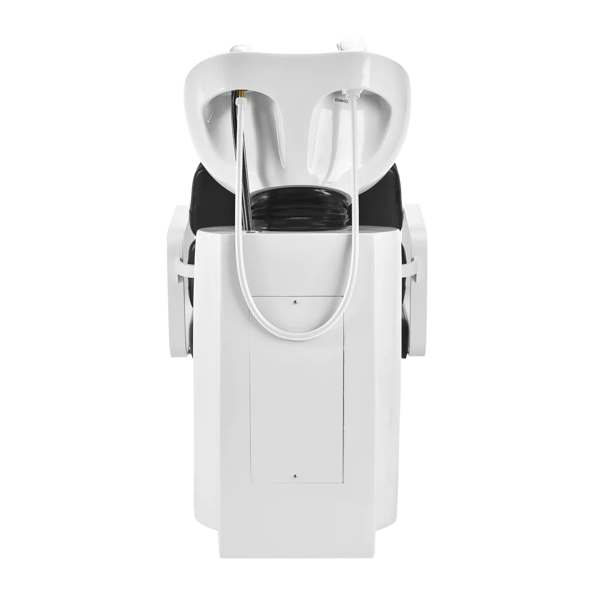 Det svarta keramiska handfatets djup är utformat för att förhindra stänk av vatten och hårprodukter, vilket möjliggör effektivt och bekvämt arbete under olika behandlingar. Blandaren är justerbar i vinkel och kan anpassas efter individuella behov. Materialet är högkvalitativt, hållbart, rep- och missfärgningsbeständigt samt lätt att rengöra. Den konturerade kanten och det vinklade ryggstödet ger stabilt stöd och komfort under hårtvätt, och det mjuka svarta plastöverdraget gör att kunderna inte känner obehag av den kalla keramiska ytan.