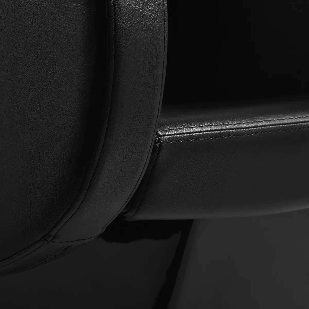 Stolen är fylld med slitstarkt skum som garanterar hög komfort under behandlingar. De konturerade armstöden ger korrekt axelställning, och ryggstödet i optimal vinkel stödjer ryggen för maximal avkoppling. Klädsel i svart konstläder säkerställer hållbarhet och enkel rengöring. Setet inkluderar en komplett uppsättning svarta beslag, inklusive kran, duschmunstycke och dedikerade slangar, vilket gör stolen till en komplett och funktionell arbetsstation.