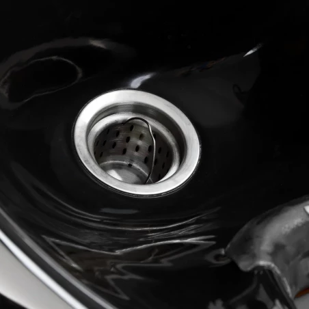 Den djupa, svarta keramikskålen är utformad för att effektivt minimera stänk av vatten och hårvårdsprodukter under behandlingen. Skålens vinkel kan justeras för optimal anpassning efter kundens behov. Det slitstarka keramiska materialet är motståndskraftigt mot fläckar, repor och kemikalier, samtidigt som den släta ytan gör rengöringen enkel. Den ergonomiskt formade nackkragen ger behagligt stöd för huvudet, och ett mjukt plastöverdrag skyddar mot den kalla känslan från keramiken.