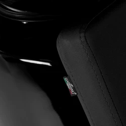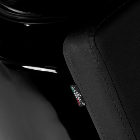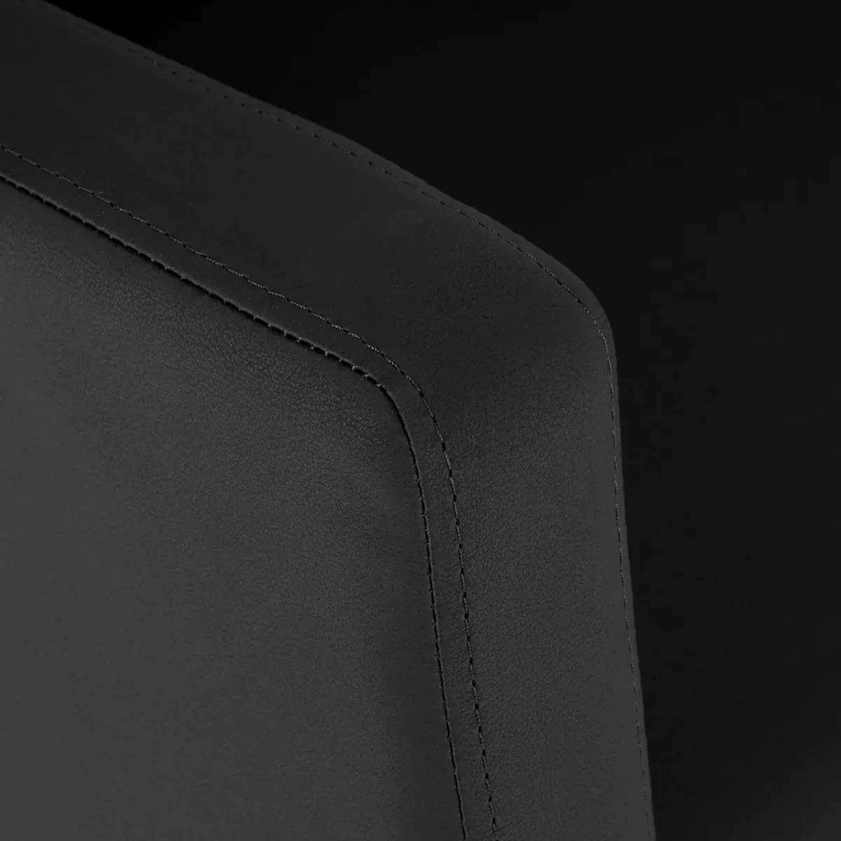 Den geometriskt utformade fåtöljen kombinerar modern enkelhet med hög användarkomfort. Den mjukt vinklade sitsen och armstöden skapar en harmonisk helhet som ger en bekväm sittposition, medan ryggstödet med optimal lutning stödjer korrekt hållning och avslappning. Klädseln i slitstarkt konstläder i svarta nyanser är fuktbeständig och lätt att rengöra. Den stilrena designen förstärker tvättstationens eleganta uttryck, och de medföljande tillbehören – kran, duschmunstycke och dedikerade slangar – ger en komplett och färdig arbetslösning.