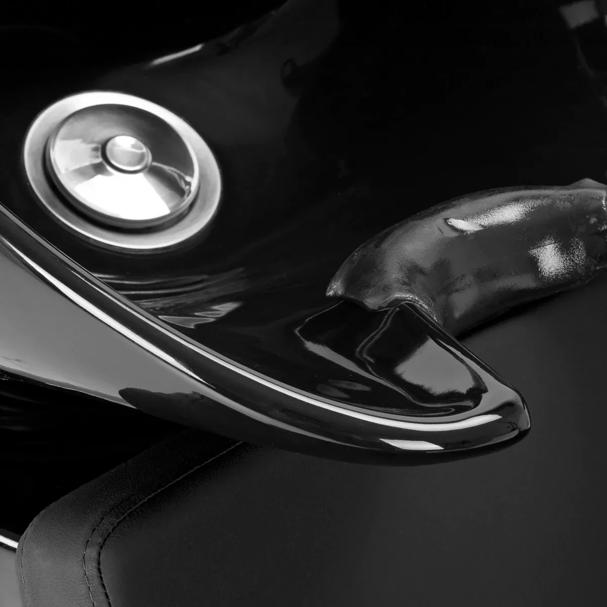 Schamponeringsstolen är utrustad med blandare som ger enkel tillgång till både varmt och kallt vatten samt smidig temperaturreglering. Ett praktiskt fäste för duschmunstycket bidrar till en organiserad arbetsstation, medan avtappningspluggen med integrerat sil säkerställer god vattenkontroll och hög hygienstandard. Vattenanslutningen är diskret placerad inuti basen för ett stilrent och professionellt intryck. Kombinationen av funktionella lösningar och ergonomiska detaljer gör det dagliga arbetet både effektivt och bekvämt.