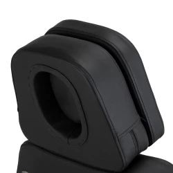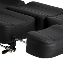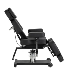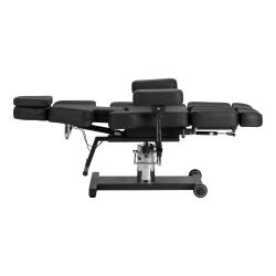 Stolen har hydrauliskt justerbar sitthöjd från 60 till 78 cm och kan fällas ut till en längd på upp till 200 cm. Manuell justering av rygg- och fotstöd, inklusive delat fotstöd med oberoende segmentjustering och avtagbara armstöd, gör det enkelt att placera klienten i optimal arbetsposition. Den fullständiga rotationsmekanismen med låsfunktion ger åtkomst från alla sidor, medan hål i nackstödet och justerbart benstöd ökar komforten under olika positioner och för användare av olika längder.