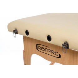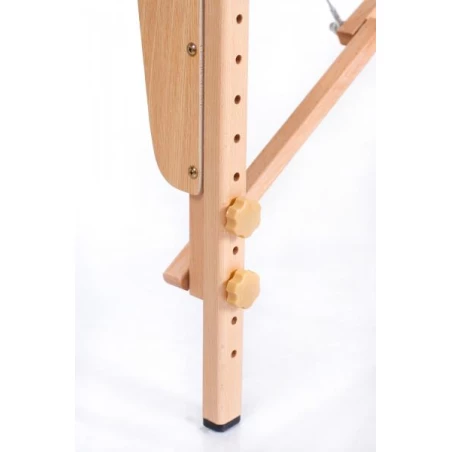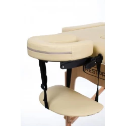 Denna portabla massagebänk är perfekt för terapeuter och massörer som behöver flexibilitet och enkel transport. Bänken levereras med praktiskt bärfodral och kan justeras för maximal komfort med ansiktsstöd och armstöd. Den har en längd på 192 cm (220 cm med ansiktsstöd), bredd 70 cm (95 cm med armstöd) och höjdjustering mellan 63–84 cm.