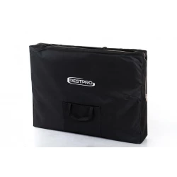 Portabel massagebänk med ansikts- och armstöd, bärfodral och justerbar höjd för professionella behandlingar.