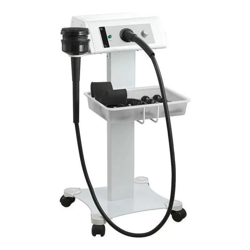 Vibrerande kroppsmassageapparat utrustad med 5 huvuden för olika behandlingar. Bas med hjul för enkel mobilitet.